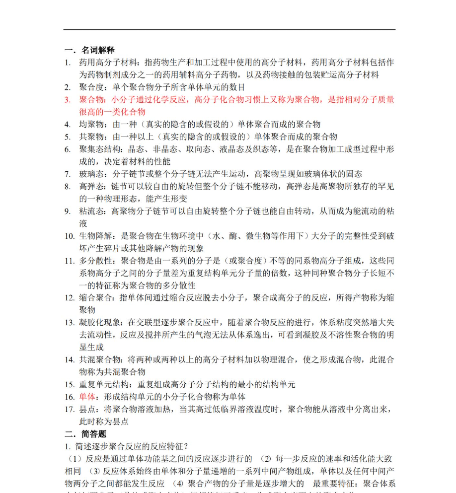 最后,计算题是送分题。只要考分子量(数均Mn、重均Mw、多分散系数PDI)和降解动力学,公式就那几个,套进去就能得分,千万别在这里丢分。