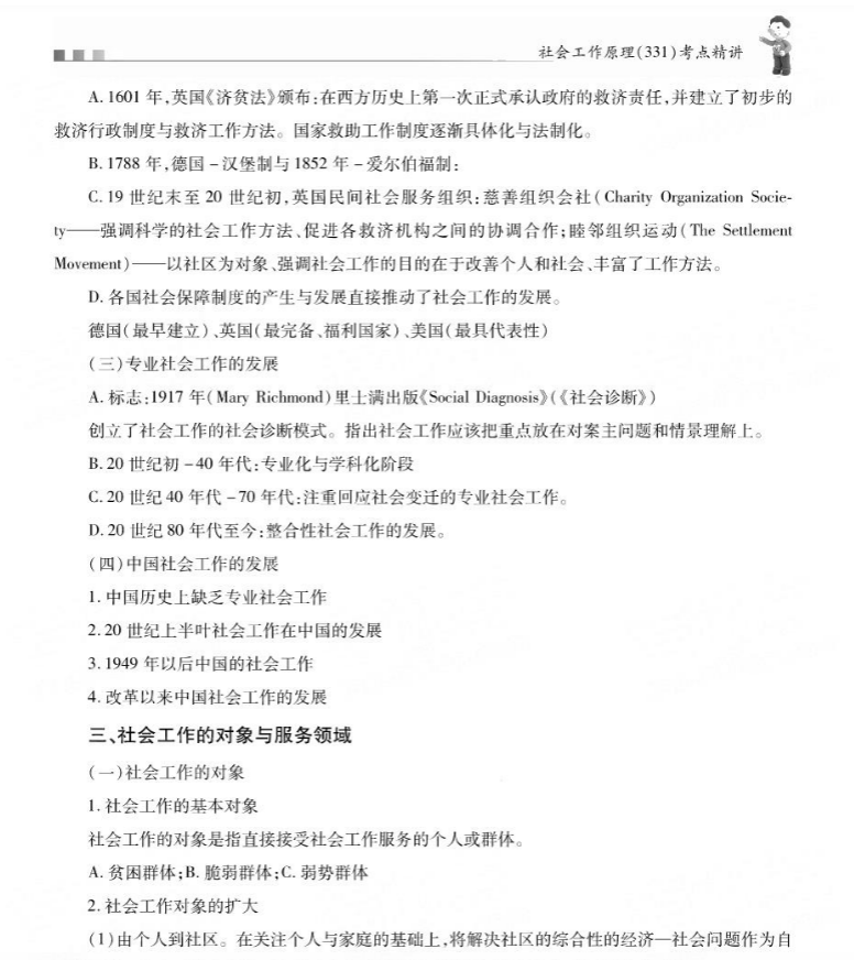 备考社会工作硕士331《社会工作原理》,最致命的误区是把它当成“名词解释背诵手册”或“本科教材知识点复述”——沉迷于背诵社会工作的定义、价值观、伦理、三大方法的概念,结果遇到“如何用增能理论分析我国乡村振兴中的社会工作参与”这类论述题时,只会罗列“增能是增加权能”几个字,却完全看不见硕士层次的考试要求的是对学科核心概念的理解深度、理论脉络的把握能力、以及用理论分析现实问题的学术潜力。