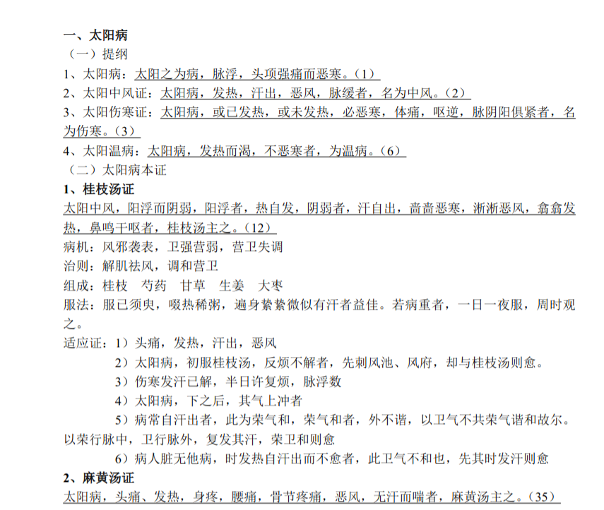 第一,以“六经辨证”为逻辑原点重构知识体系。 绝大多数考生按太阳、阳明、少阳、太阴、少阴、厥阴的顺序死守,这是六经编排的逻辑,但不是《伤寒论》的思维逻辑。高分考生的知识库是按“经—证—方”这条主线重组的。 建议手绘一张“六经辨证体系图”,把六经作为主干,每一经下分本经证、经证、腑证、兼证、变证,并标注对应的主证、主方。把教材各章的核心条文挂载到它们在辨证体系中的位置。合上笔记能从“发热恶寒无汗脉浮紧”这个症候群,立即定位到太阳伤寒表实证,想到麻黄汤,并知道它与桂枝汤证(汗出脉缓)的区别,才算读懂了伤寒论的辨证逻辑。