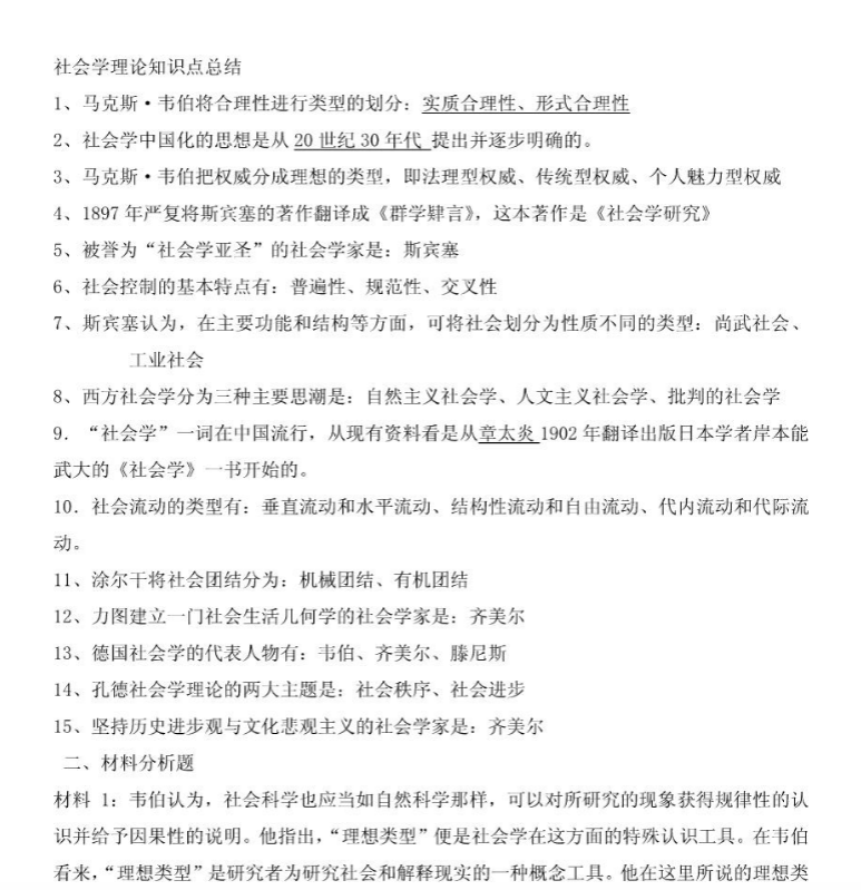 备考《社会学理论》,最致命的误区是把它当成“社会学名人名言大全”——沉迷于背诵孔德、斯宾塞、涂尔干、韦伯、马克思的生卒年月、核心著作、主要观点,结果遇到“用社会学理论分析当下算法对劳动者控制的现象”这类问题时,只会罗列“韦伯的理性化、马克思的异化”几个名词,却完全看不见社会学理论的核心是理解现代社会的形成、运作与困境。这门课的本质不是理论史,而是用经典理论家的眼光,洞察我们身处的这个时代。