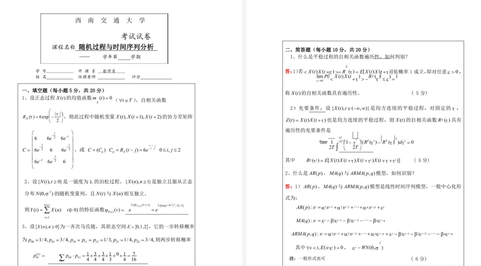 平稳分布:必须吃透有限状态不可约非周期马尔可夫链的平稳分布存在唯一性定理,能熟练求解线性方程组(πP=π,∑π_i=1)。这是排队论、通信网络分析的基础。