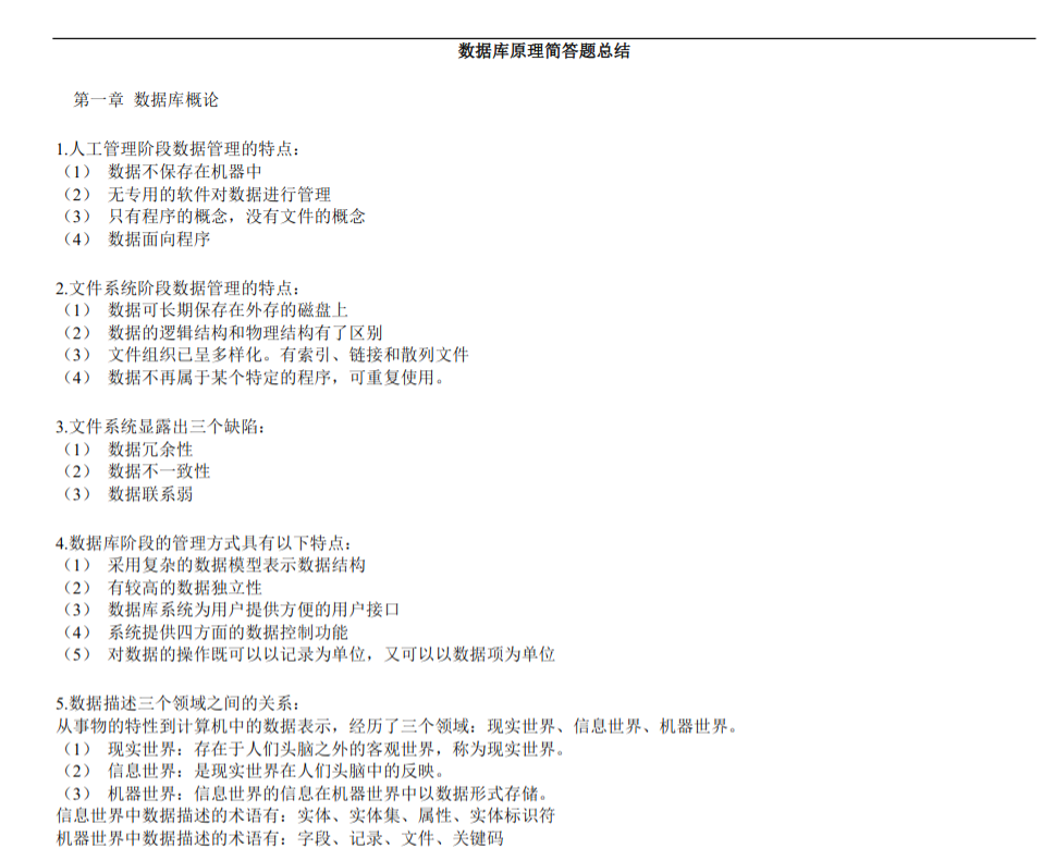 • 事务管理:ACID特性(原子性、一致性、隔离性、持久性)、并发控制(封锁协议、可串行化调度、两段锁协议)、故障恢复(日志、检查点机制)。要理解这些机制如何保证数据库在并发和故障情况下的正确性。
