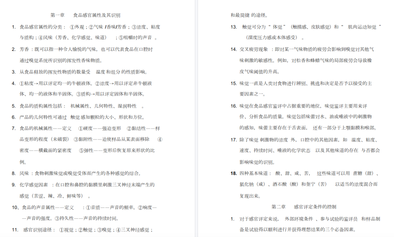 第一,以“感官测量”为逻辑主线重构知识体系。 建议手绘一张“感官评定技术路线图”:从“你要测什么”(区分、描述、偏好)出发,选择“用什么方法”(三类检验法),确定“找什么样的人”(选拔、培训评价员),设计“怎么呈现样品”(环境、顺序、编码),最后“数据分析与解释”(统计方法)。把教材中的知识点挂载到这条流程线上。