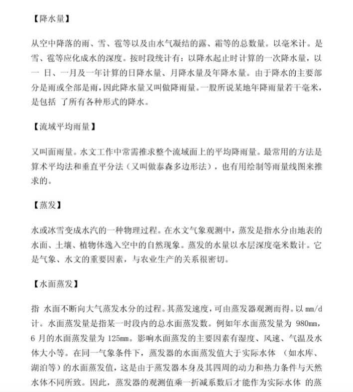 产流机制:必须吃透蓄满产流(包气带蓄水容量、产流面积变化、降雨总量决定产流量)和超渗产流(下渗能力曲线、降雨强度决定产流量)的根本区别、判别方法及产流量计算。北京师范大学、长江科学院的考纲中都将其作为核心考点。