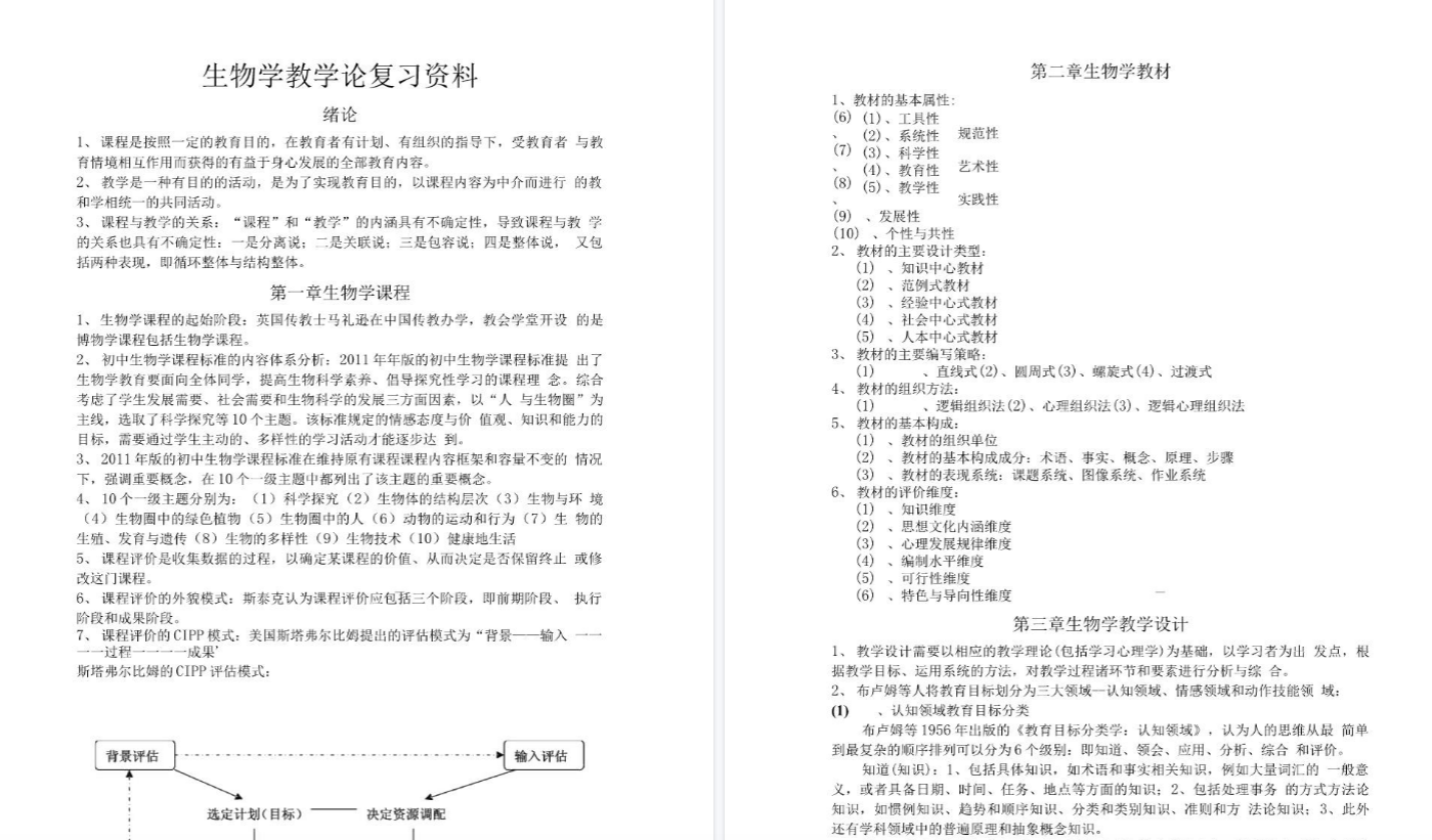 第一,以“教学设计”为逻辑主线重构知识体系。 从分析教材和学生(学情分析),到确定教学目标(核心素养的四维目标),到选择教学策略(探究式、概念图、模型建构),到设计教学过程(导入、展开、总结),最后到教学评价(形成性与终结性)。把教学论的各章知识挂载到这条设计链上。