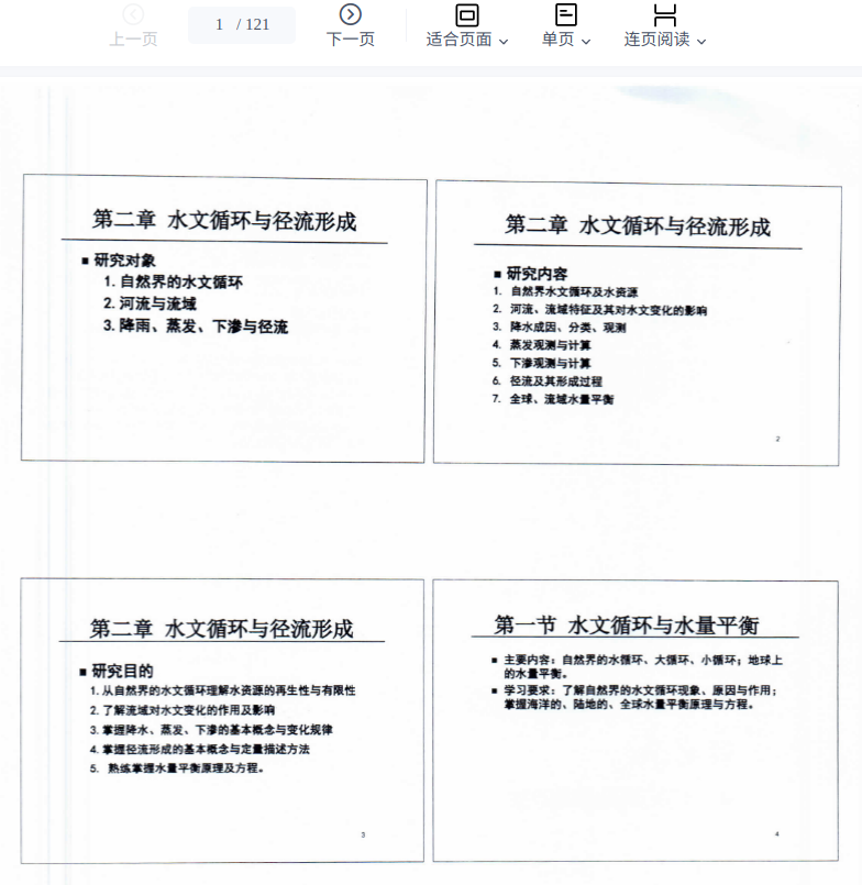 • 理论基础:水文循环与水量平衡、降水、土壤水、下渗、蒸散发