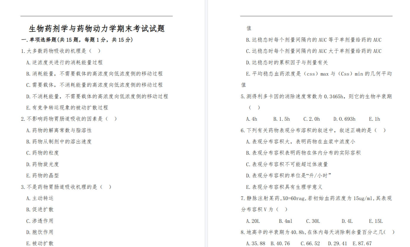 第一,以“药物体内过程”为逻辑主线重构知识体系。 从吸收(速度、程度)→分布(表观分布容积)→代谢(转化、首过效应)→排泄(清除率、半衰期),这是一条完整的“药物之旅”链条。把房室模型、隔室理论、非线性动力学、统计矩等数学工具,挂载到这条链上的各个环节。
