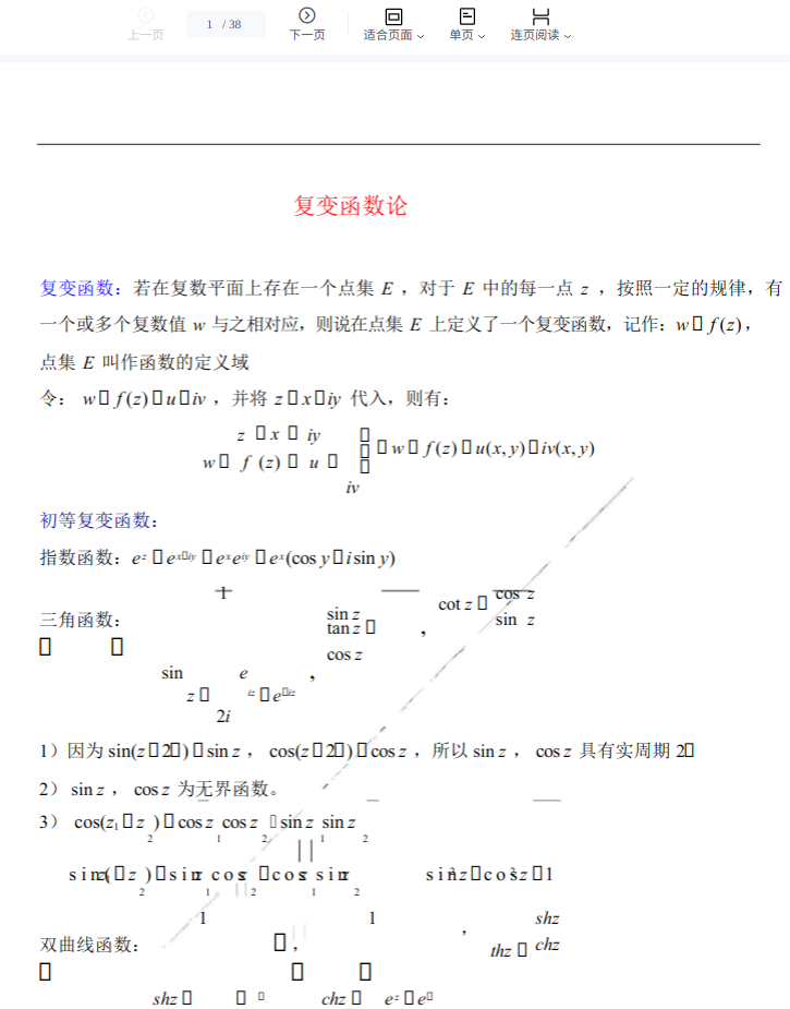 复变函数:解析函数的性质、留数定理、辐角原理。留数定理是计算实变函数积分的利器,物理中大量用到。
