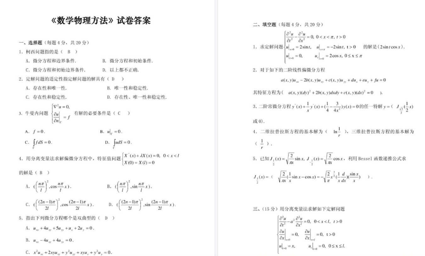 第一,以“三类典型方程”为逻辑主线重构知识体系。 数学物理方法的灵魂是波动方程、热传导方程、拉普拉斯方程这三类偏微分方程的求解。建议手绘一张“三类方程-求解方法-应用场景”的关联图,把分离变量法、行波法、格林函数法、积分变换法等挂载到它们最适用的方程类型上。搞清“什么方程用什么方法”比死背每种方法的推导更重要。