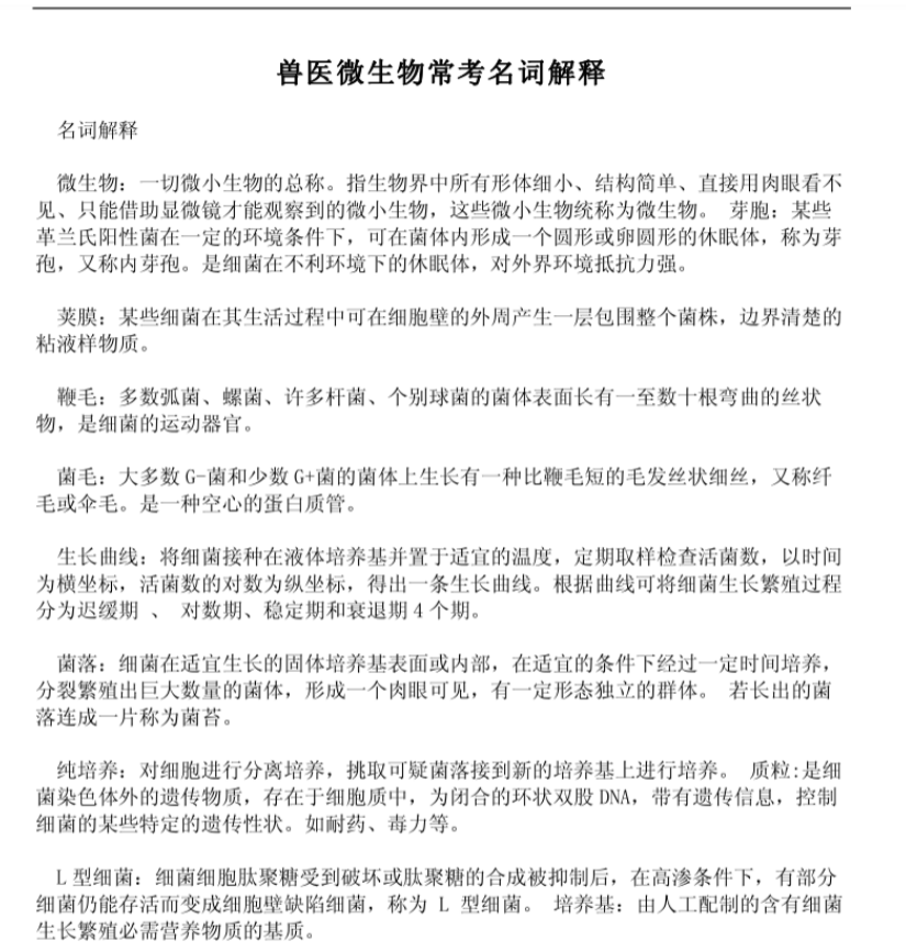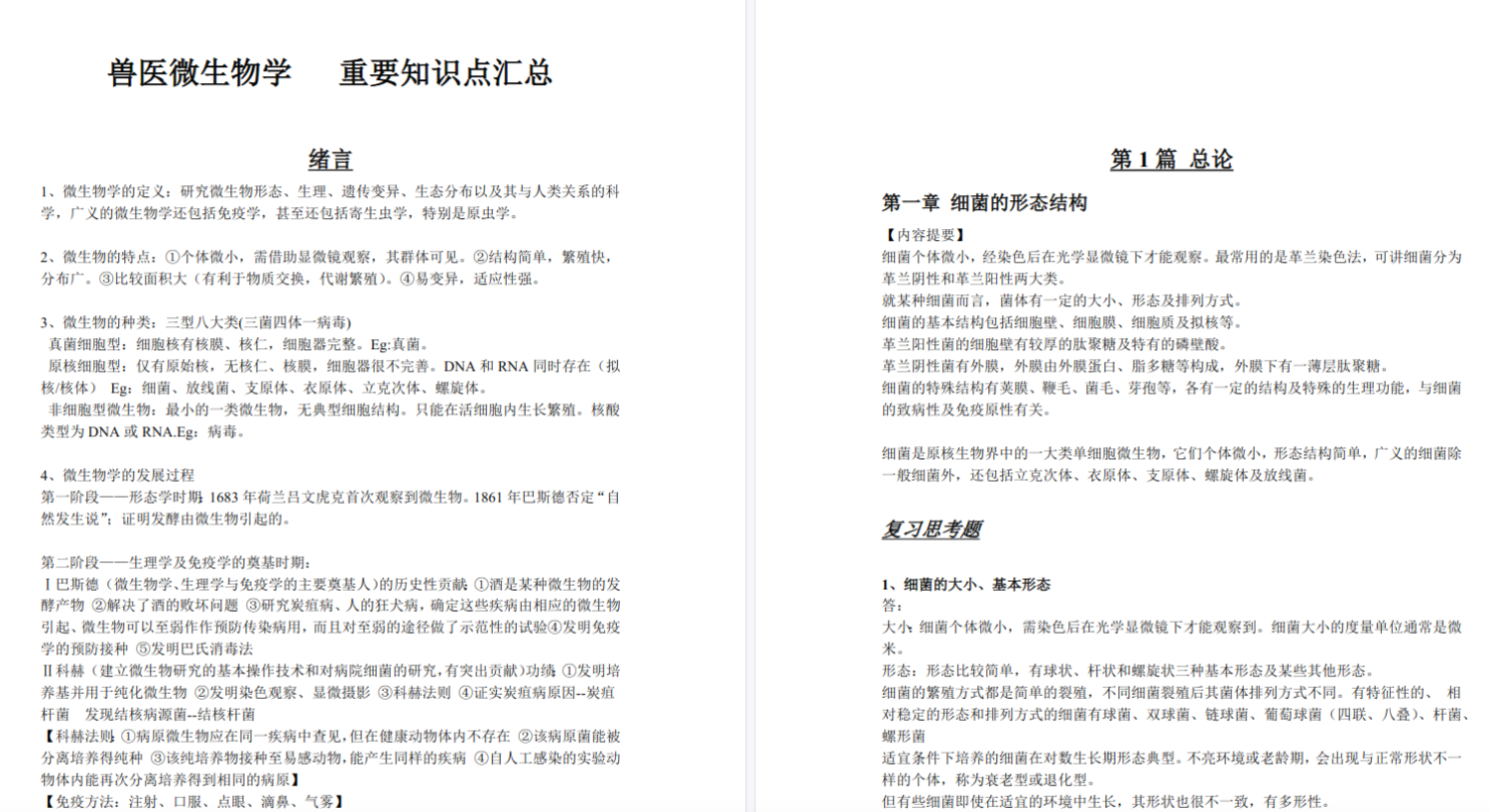 • 重要病原菌/病毒:如金黄色葡萄球菌、沙门氏菌、布氏杆菌、炭疽杆菌、口蹄疫病毒、禽流感病毒、非洲猪瘟病毒等。复习时,必须能回答出:它的形态结构、培养特性、抵抗力、致病物质、所致疾病、微生物学诊断要点(如分离培养、生化鉴定、血清学检测、分子检测)。这是高频考点。