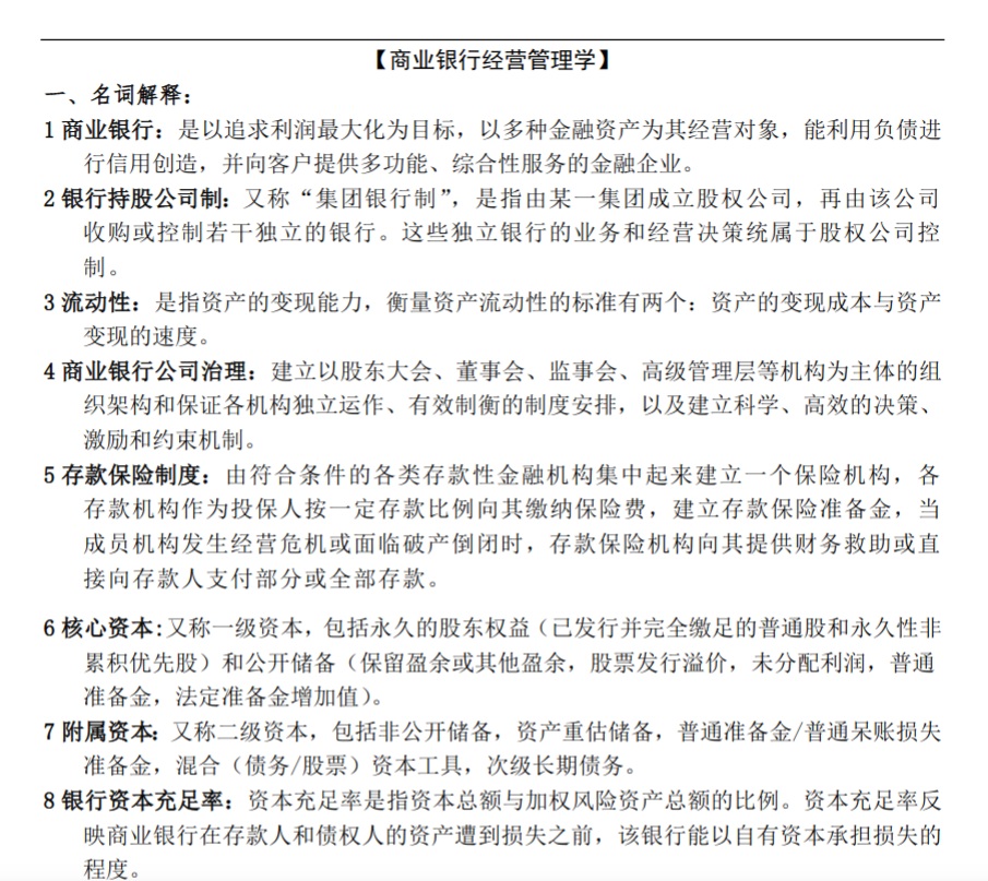 第一,以“业务经营”为逻辑主线重构知识体系。 绝大多数考生按负债业务、资产业务、中间业务、国际业务、电子银行业务的顺序死守,这是业务分类的逻辑,但不是经营管理的思维逻辑。高分考生的知识库是按“客户需求—产品设计—渠道触达—风险控制”这条经营主线重组的。 建议手绘一张“商业银行经营全景图”,起点是“客户需求”(存款、贷款、支付、理财等),经过“产品设计”(各类业务的具体产品),通过“渠道触达”(网点、手机银行、客户经理),最后到达“风险控制”(信用风险、操作风险、合规风险)。把教材各章的存款产品、贷款产品、支付结算、信用卡、理财业务全部挂载到它们在经营链条中的位置。合上笔记能从“零售业务转型”这个任务,推演出第一步要分析目标客户需求变化,第二步要设计差异化产品,第三步要升级触达渠道,第四步要防范新业务风险,才算读懂了商业银行经营管理的系统逻辑。
