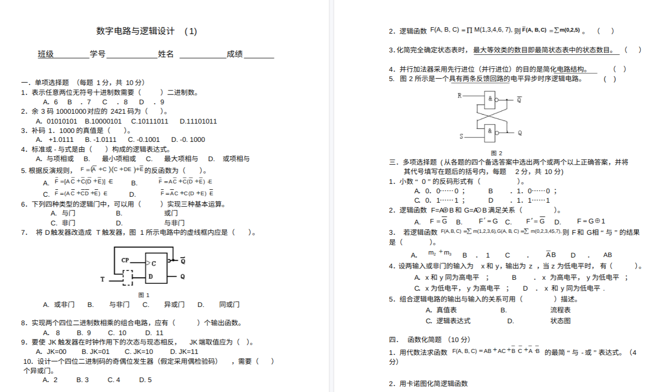 第一,以“逻辑代数”为地基,以“组合与时序”为两大支柱重构知识体系。 数制的转换、卡诺图化简是所有分析的工具。在此基础上,组合逻辑(如加法器、译码器、数据选择器)的核心是逻辑表达式到电路图的转换;时序逻辑(由触发器构成)的核心是状态转换,必须吃透触发器特性方程和同步/异步计数器设计。