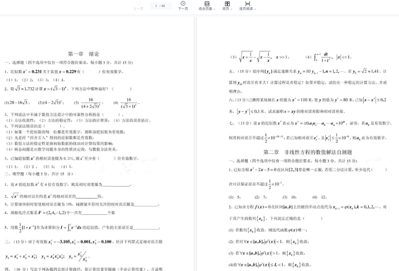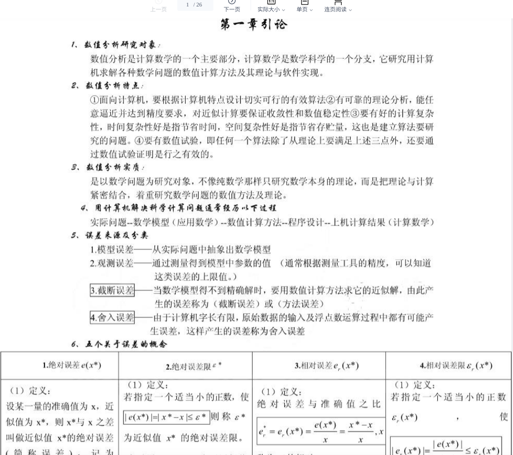 误差分析:绝对误差、相对误差、有效数字、截断误差、舍入误差。要理解误差如何产生、如何传播,以及如何评价一个算法的数值稳定性(比如,避免相近数相减、避免大数吃小数)。