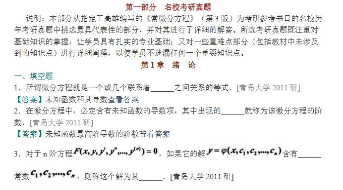 高阶线性是核心:把常系数线性齐次/非齐次方程的求解(特别是特征根法和待定系数法)作为绝对重点,投入最多时间,必须达到自动化输出的程度。