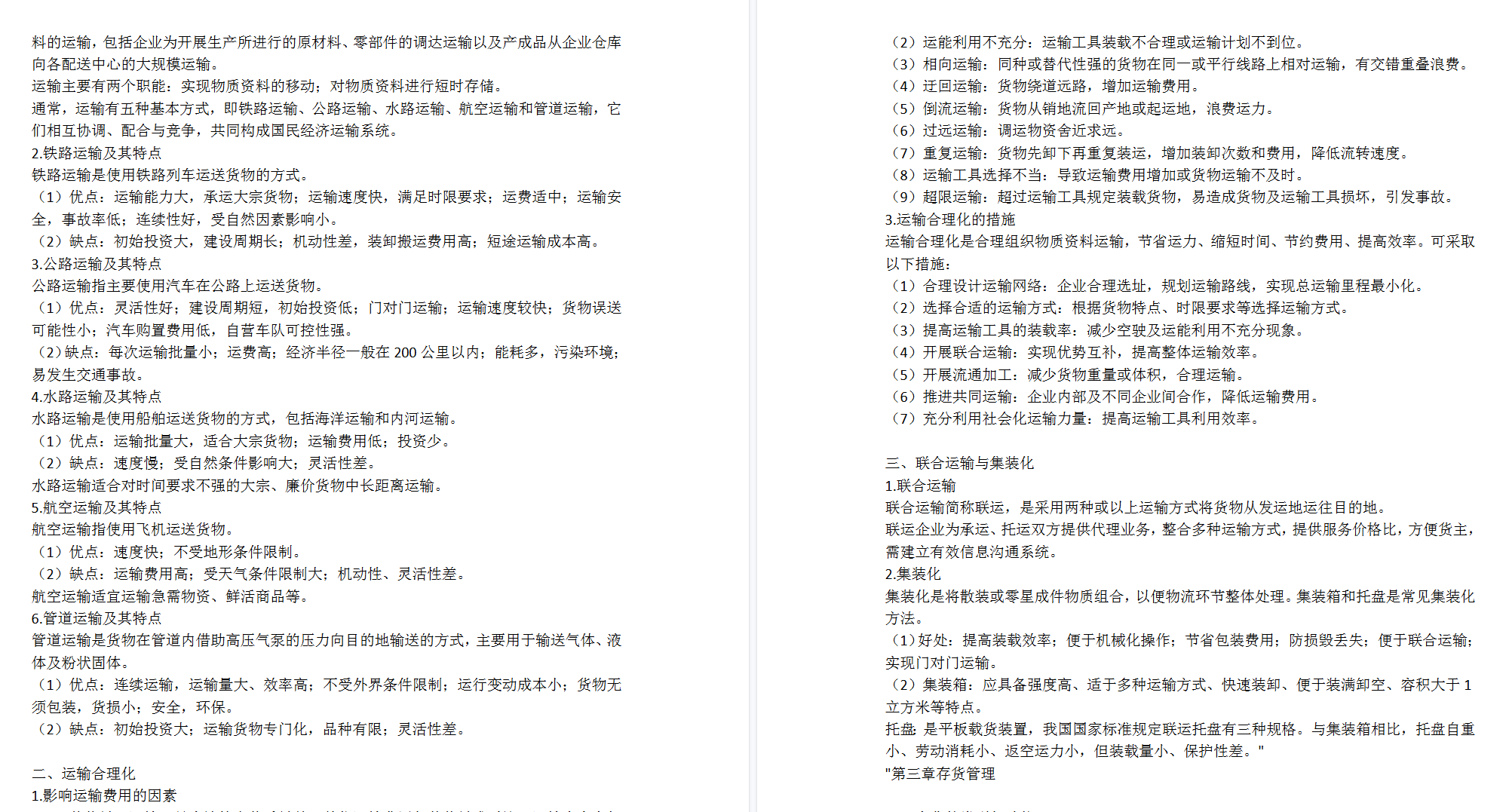 “对比不同模式/技术的优缺点”:列表对比不同运输方式、仓储策略、库存控制方法、供应链模式的核心差异与适用场景,形成决策工具箱。