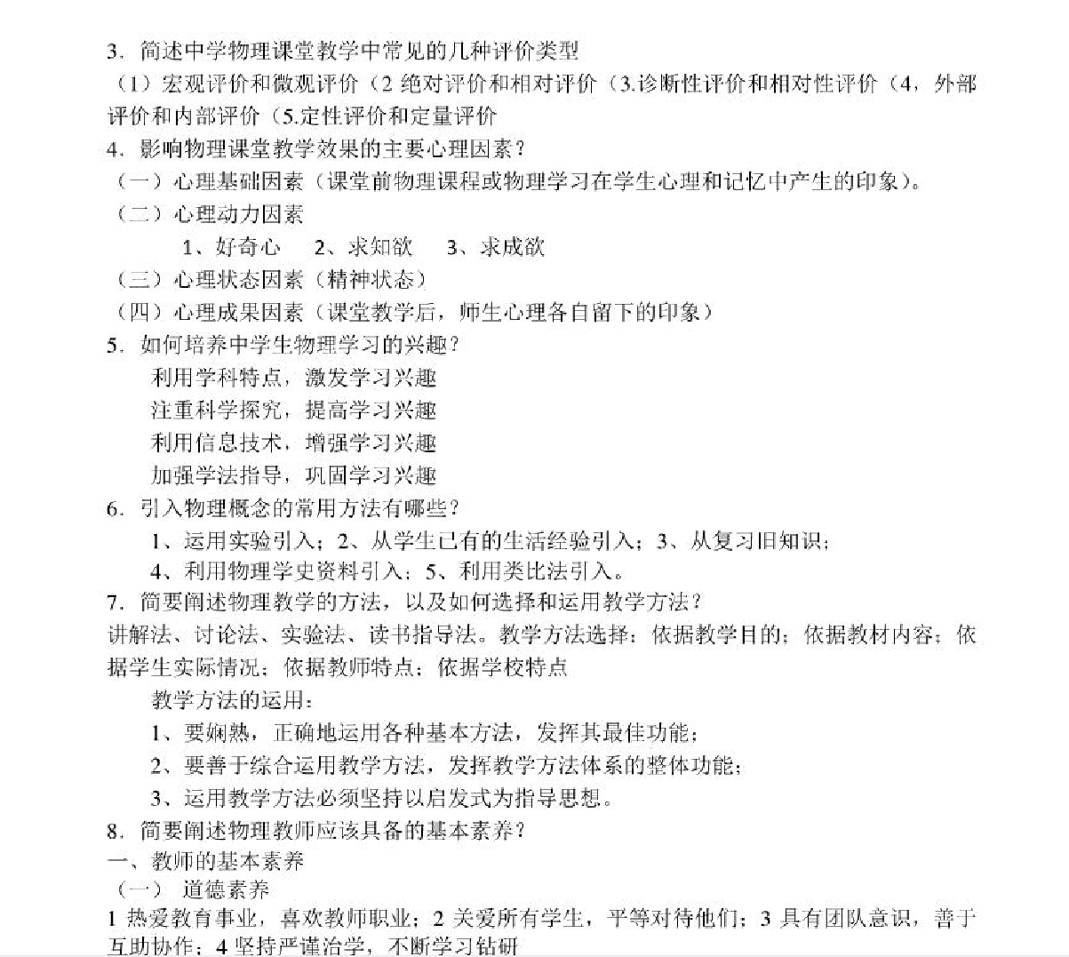 学习评价与教师发展:掌握物理学习评价的方法(诊断性、形成性、终结性)与工具,了解说课、评课的基本方法及物理教师专业发展路径。