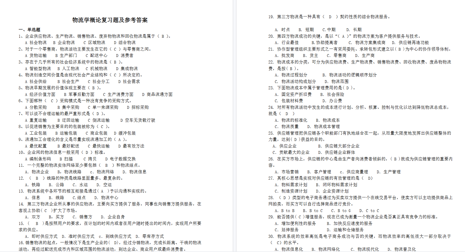 概念根基:精确掌握物流的定义、分类、核心价值(创造时间、空间、形质效用),理解其与商流、资金流、信息流的协同关系,明确物流在经济活动中的基础性作用。