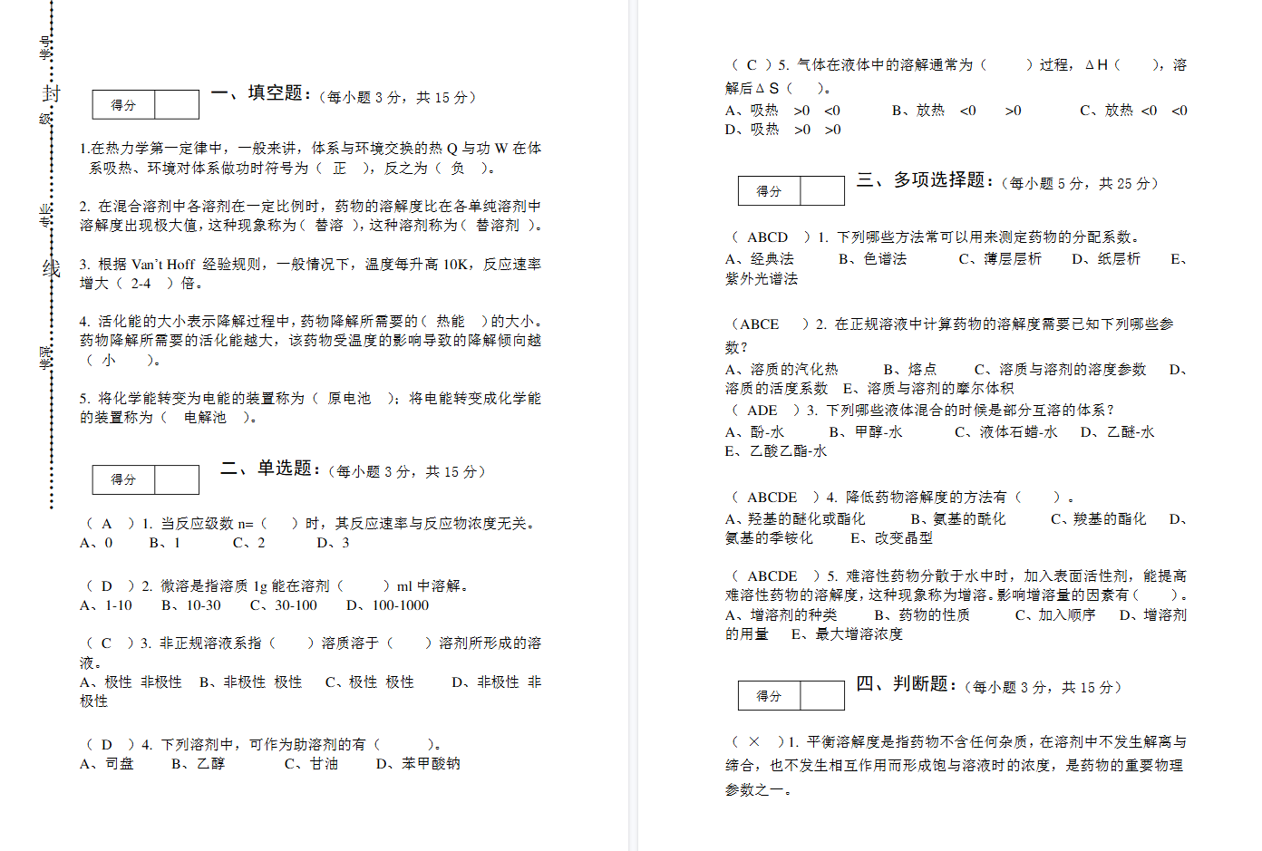 “掌握关键公式与计算”:熟练运用HLB值计算、Noyes-Whitney溶出方程、Arrhenius方程、稳定性动力学公式等,完成相关计算,并理解其物理意义。