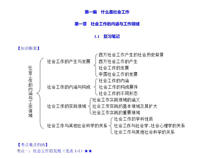第一步,别直接背,先理清全书的“问题意识”。​ 花点时间看看目录和小标题。这本书基本是围绕这几个核心问题展开的:社会工作到底是什么(本质、价值观、理论)?它的服务对象是谁(个体、家庭、群体、社区)?具体怎么帮人(三大方法:个案、小组、社区)?以及在哪些领域发挥作用(儿童、老年、司法等)?心里有这张“全景图”,学具体内容时就知道它是在回答哪个问题,知识就不会散。