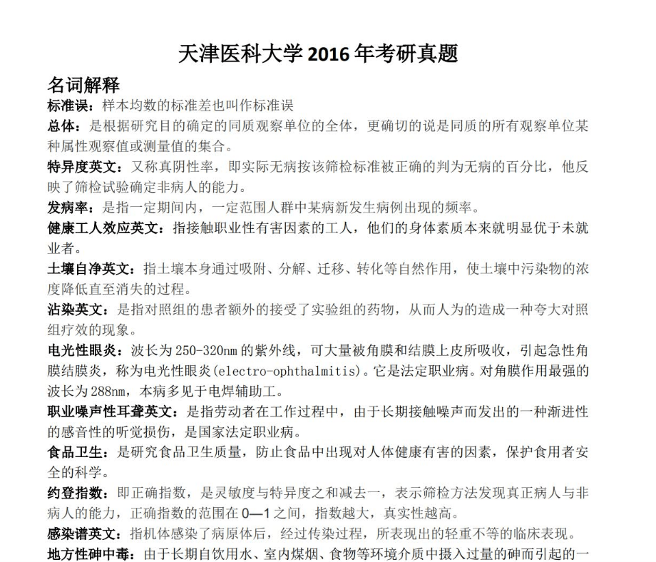 3. 天医大特色倾向:考题常融入 公共卫生领域热点(如新冠疫情暴露出的防控策略思考、大数据在流行病学中的应用)及 预防医学前沿动态
