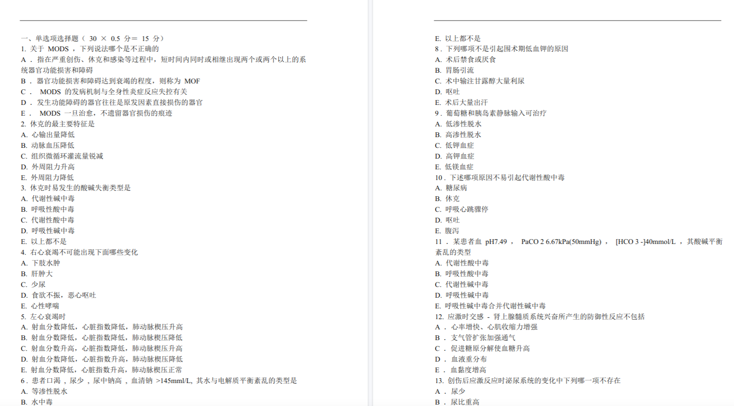 备考专业课《危重病医学》,需立足学科专业性与临床紧迫性,兼顾理论识记、病情评估与急救实操,贴合课程核心逻辑高效备战。首先,梳理课程核心框架,重点掌握危重病的识别标准、监测指标、急救原则,牢记休克、呼吸衰竭、多器官功能障碍等核心病症的发病机制与诊疗逻辑,明确各项监测与急救措施的适用场景,筑牢理论与实操根基。其次,聚焦高频考点,重点掌握生命体征监测、人工气道建立、机械通气应用等核心技能,结合临床病例深化对急救流程的理解,熟练掌握危重病护理与并发症预防要点,避免机械记忆。最后,结合真题与病例模拟强化巩固,梳理易错病情判断类、急救操作类、诊疗方案类题型,定期复盘总结,兼顾理论背诵与临床实操,吃透课程重点、理清急救逻辑,提升应试与临床急救能力,从容应对专业课考试。