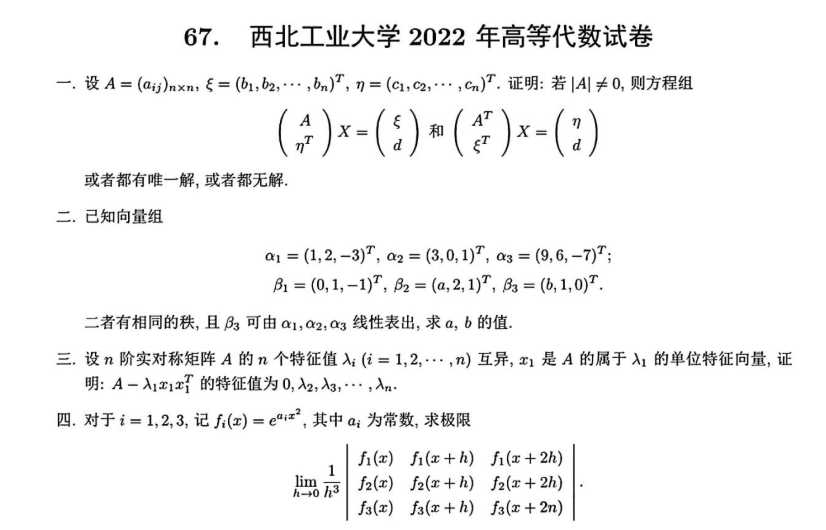 强化阶段聚焦模块攻坚与真题协同。按科目分专项突破高频题型,数学分析重点训练极限计算、积分证明、级数敛散性判断;高等代数侧重矩阵运算、线性方程组求解、二次型标准化等题型。系统梳理真题,总结命题规律——西工大该科目命题紧扣教材核心,侧重知识点综合应用,较少偏题怪题。通过真题熟悉考察风格,规范解题步骤,强化跨模块综合解题能力,针对薄弱模块(如数学分析的积分证明、高等代数的矩阵对角化)开展专项练习。