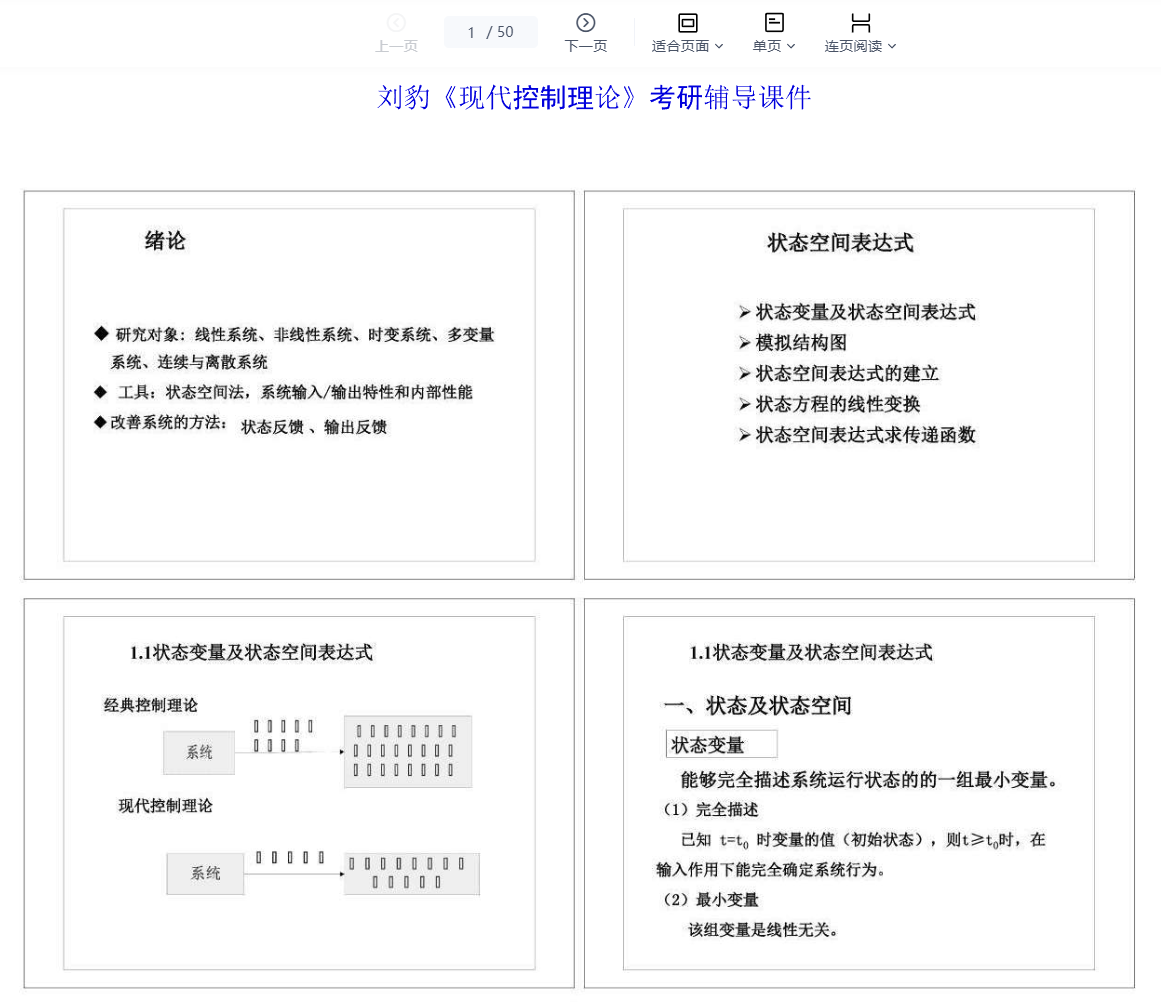 备考第一步,必须从“经典控制”的框里跳出来,建立“状态空间”的思维。整本书的核心就是围绕状态空间模型的建立、分析和设计展开。你需要非常清楚:什么是系统的状态?状态方程和输出方程如何描述动态?时域和复域(s域)分析有什么根本不同?把前两章关于状态空间表达(包括能控、能观标准型)的部分吃透,后面的分析和设计才有根基。