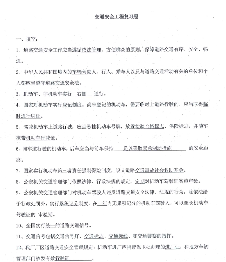 专题整合复习:围绕“事故致因理论与调查分析专题”、“道路交通安全审计与评价专题”、“交通参与者行为安全与教育专题”进行知识整合。