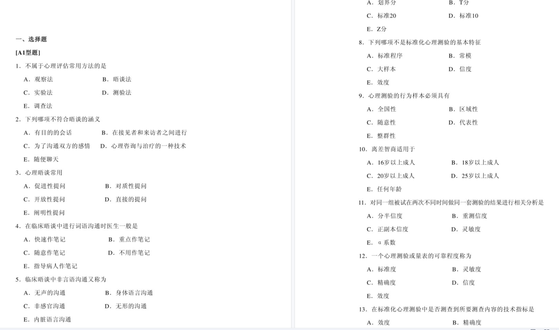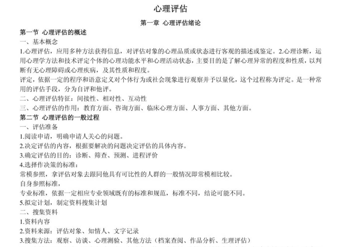 备考《心理评估学》,关键在完成从“使用工具”到“整合信息、形成判断、撰写报告”的临床思维转变。这门课是心理测量学的进阶与应用,难点在于如何将标准化的测验数据,与灵活的临床观察、访谈信息相结合,做出一个负责任的专业判断。根据过来人的经验,想拿高分,你必须建立“多方法收集-多维度整合-系统性分析-规范性报告”的完整评估思维链。