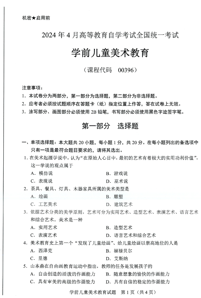 00396《学前儿童美术教育》备考核心是掌握学前儿童美术教育基础理论、儿童美术发展规律及实践活动设计逻辑,紧扣“理论扎实+方法适配+活动可行”的备考要求,聚焦理论基础、发展特点、实践设计三大核心模块,通过“夯实基础—考点突破—实战演练”的节奏,实现理论记忆与学前美术教育实践能力的同步提升。该科目侧重考查核心概念识记、儿童美术发展阶段特征、教学原则应用、美术活动设计等内容,兼顾识记、理解与实践设计能力,具体建议如下: