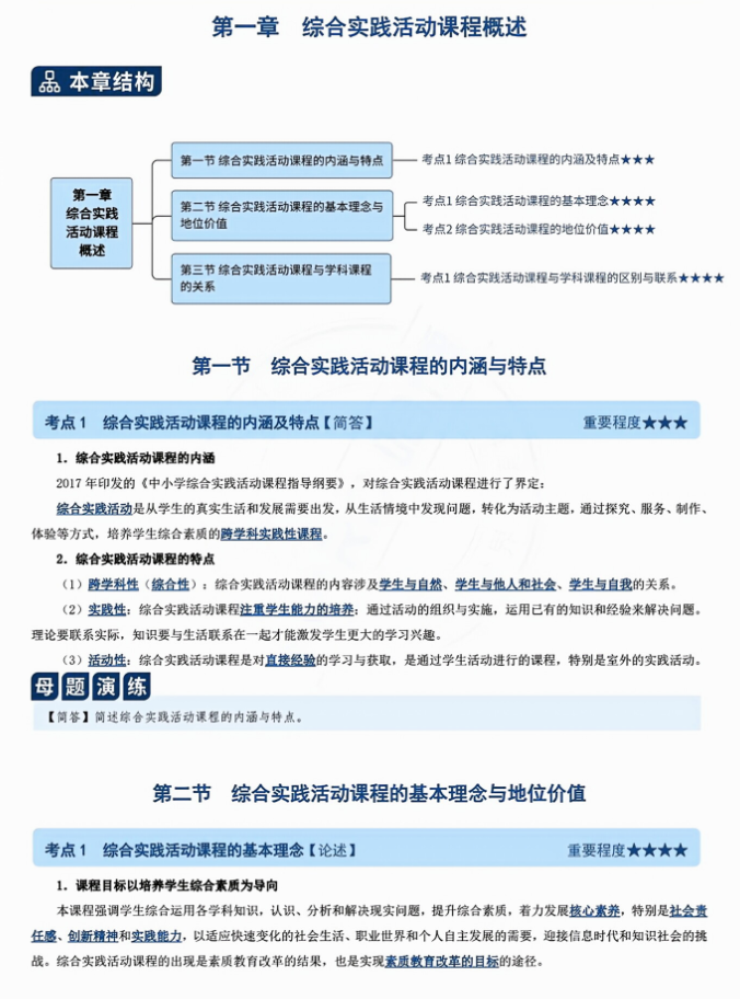1. 概念辨析题:准确区分相似概念,如“综合性学习”与“传统分科学习”的差异。