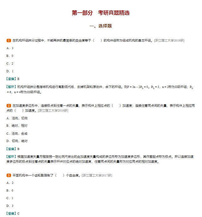 杨可桢《机械设计基础》(第5/6/7版)备考核心是“吃透教材体系、掌握机构原理、夯实零件设计、强化工程应用”。首先明确核心资料体系,以该教材(三版核心考点一致,可任选其一搭配另一版补充细节)为绝对核心,搭配配套《习题集》《学习指导书》,辅以机械设计手册(基础部分)、历年真题集,摒弃超纲工程案例资料。搭建“机构原理与机械传动—机械零件设计—强度计算与润滑—综合设计实践”的四层知识框架,按教材章节脉络逐节梳理,重点标记机构与零件的关联逻辑(如传动机构与轴、轴承的匹配设计),避免知识点碎片化。