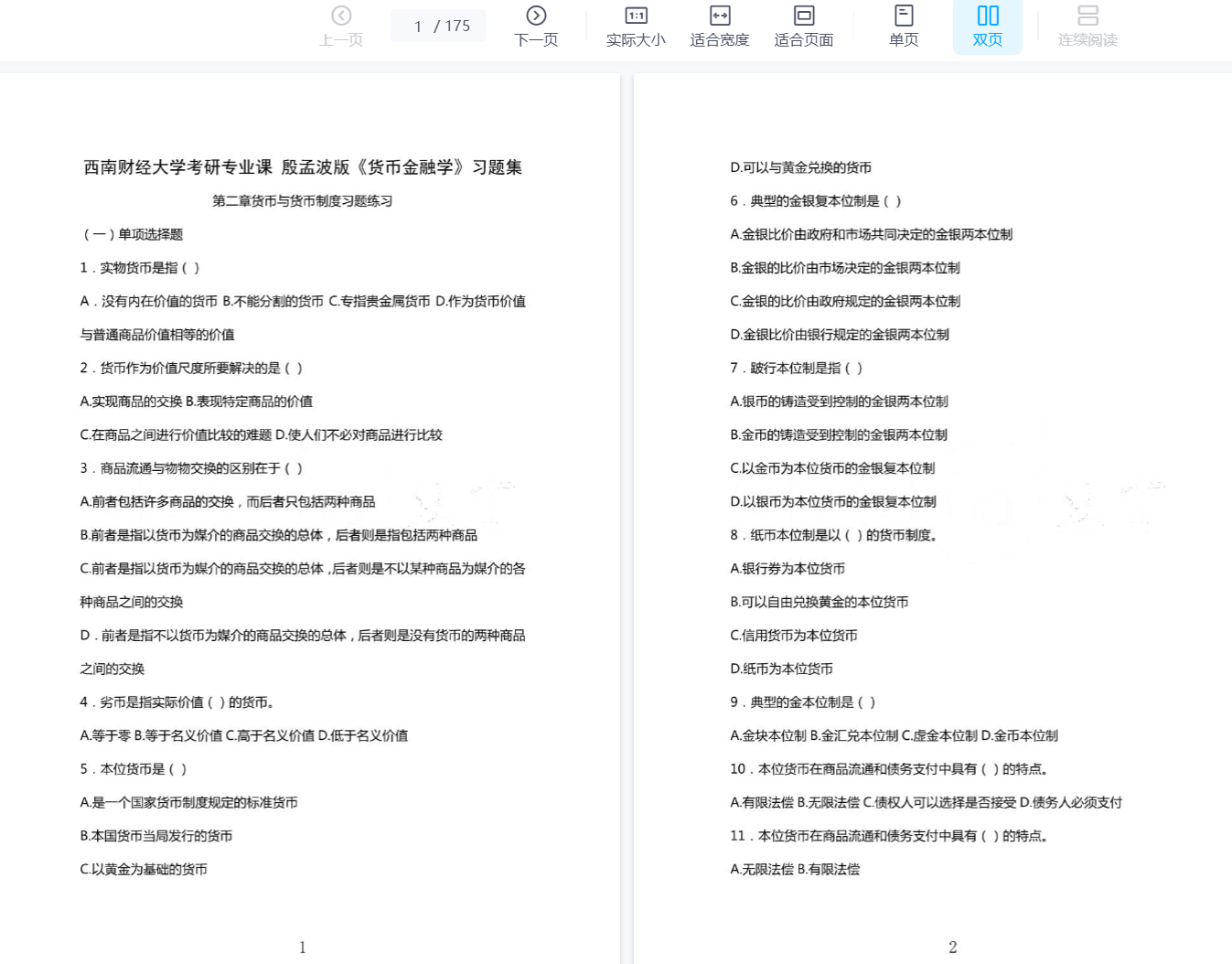 核心计算:重点练习 单利/复利、现值/终值、到期收益率、久期、货币乘数与存款派生、基础货币与货币供应量 等计算,确保公式熟练、计算准确。