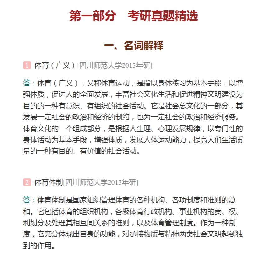 一、紧扣教材,建立知识体系 本书结构清晰,系统阐述了体育的本质、功能、发展规律等基础理论。首先应通读目录,把握“体育概念—体育功能—体育手段—体育文化—体育体制—体育发展趋势”的主线。精读各章节时,建议用思维导图梳理核心概念(如体育的“三基”本质、身心统一观等)及其关联,形成自己的理论网络。