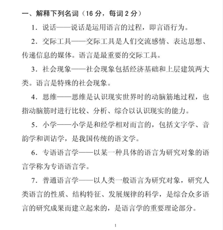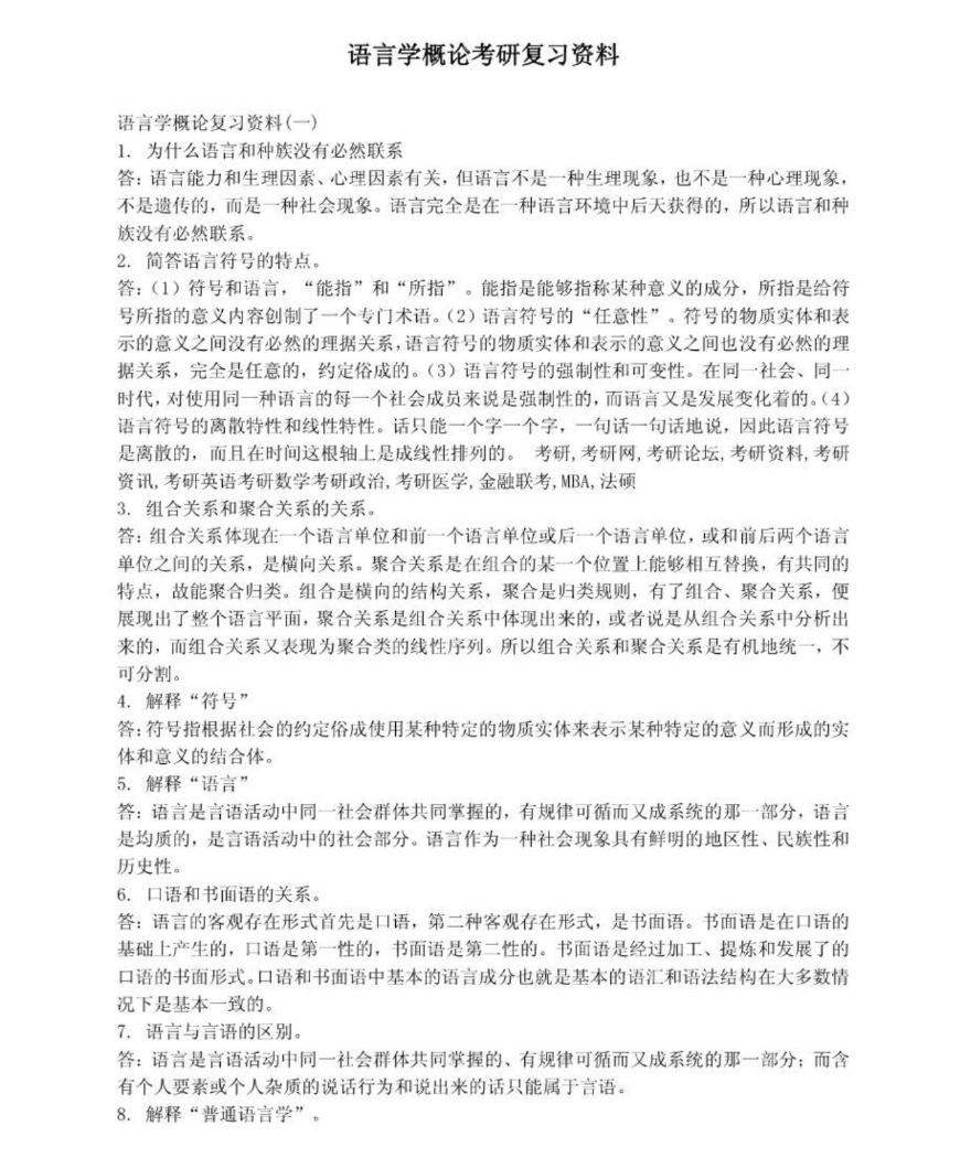 去把目标院校近10年真题找来,你会发现论述题经常是往年简答题的“扩充版”。特别是“语言的本质特征”(任意性、二层性、能产性),轮着考。直接背整理好的真题答案库,效率最高。