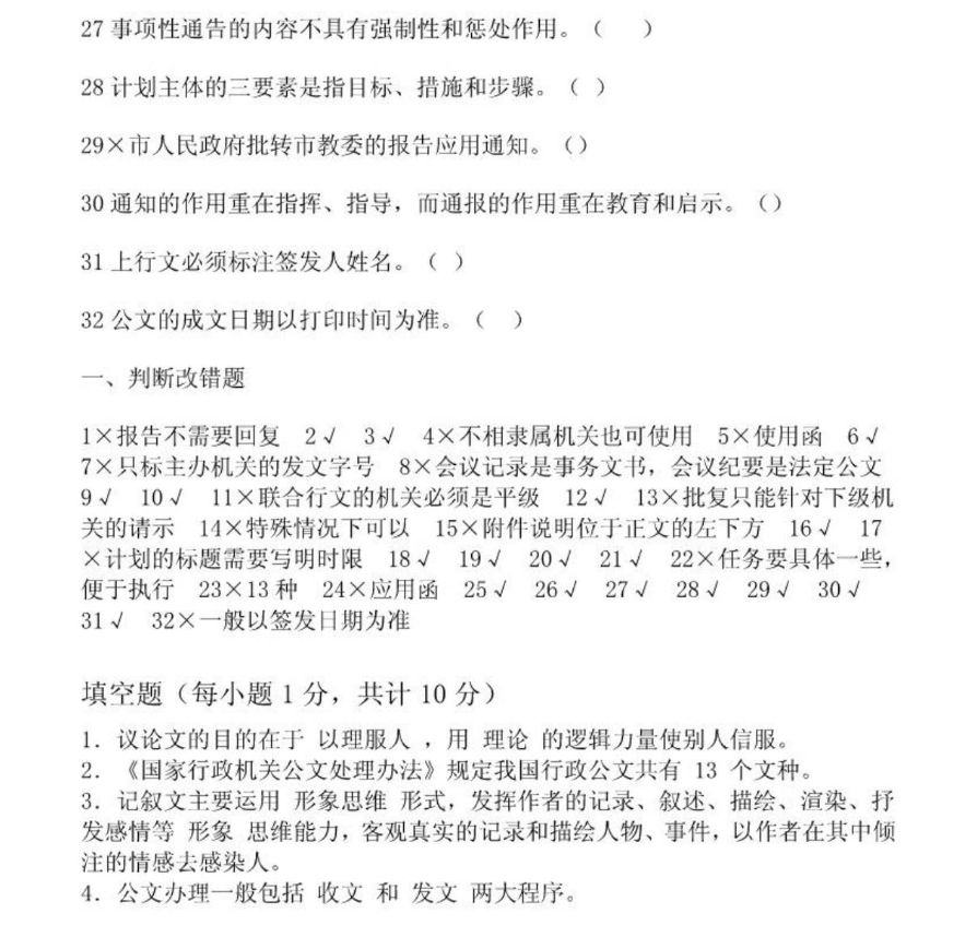 其次,真题是“题库”,原题复现率高到离谱。 去打印店把近10年真题买回来,你会发现考点就在那几个文种里轮流转,甚至连背景材料都不带变的!去年考“招聘启事”,今年可能考“招标公告”,但逻辑完全一样。一定要动手写! 别光看范文,眼高手低是最大的坑。拿真题练手,写完对比范文找差距:是语气太随意?还是遗漏了关键要素?比如“函”的结尾要用“特此函达”,别写成“此致敬礼”,这种细节最容易丢分。