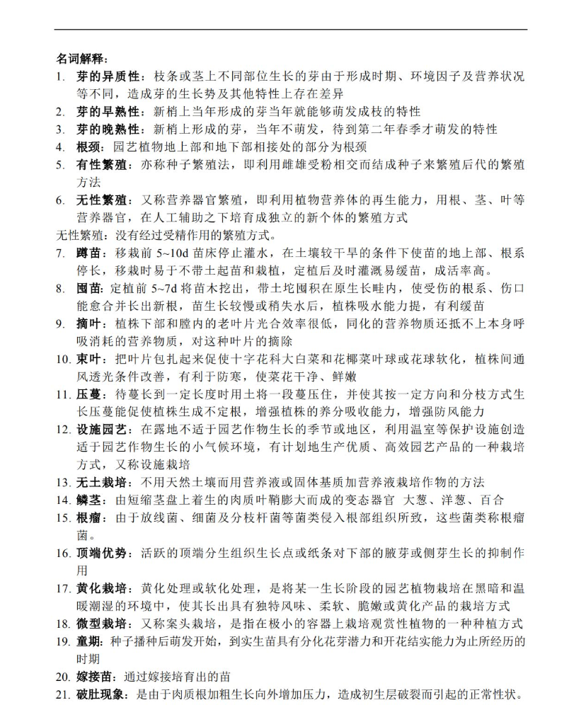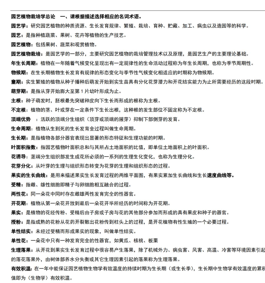 首先,死磕“关键参数”和“流程图”。 总论的核心就是“环境调控”和“技术管理”,简答题全是硬指标!比如“光周期调控”的具体时长、“水肥临界期”的判断标准、不同作物的“三基点温度”。这些数字不能大概齐,必须精准记忆。建议自己动手画“栽培管理年历表”,把整地、育苗、定植、修剪、采收串成一条线,比如看到“蹲苗”马上反应出“控水促根”的目的和具体手法,像写施工日志一样去答题。