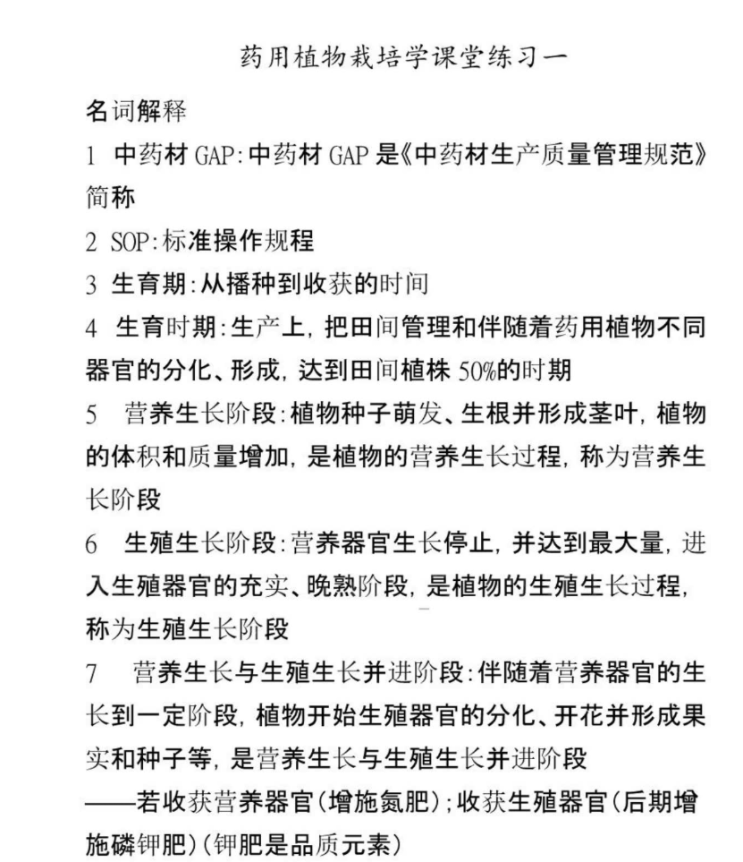 最后,别忽视“新技术”。组织培养、无土栽培、GAP基地认证这些虽然考得少,但一旦考到就是论述题,背几个万能句(如“实现工厂化生产”、“保证有效成分稳定”)就能混个不错的分数。