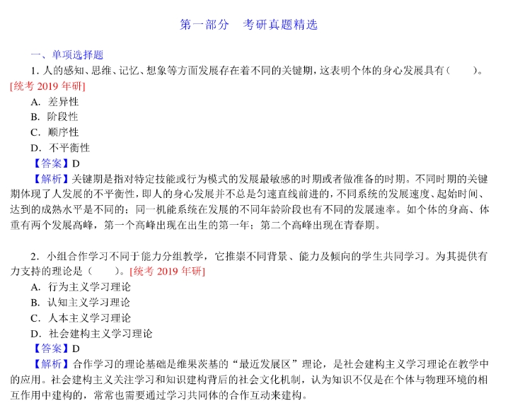 然后,掌握几个“高亮”概念。​ 书里有很多重要的心理学概念,本身就是考点,也要理解透,比如:最近发展区(学生现有水平和可能达到的水平之间的差距)、学习迁移(学会一样东西对另一样的影响)、自我效能感(对自己能否完成某事的信心)、归因方式(把成功失败归结于什么原因)、元认知(对自己认知过程的认知和调控)。这些概念是分析具体问题的高级工具。