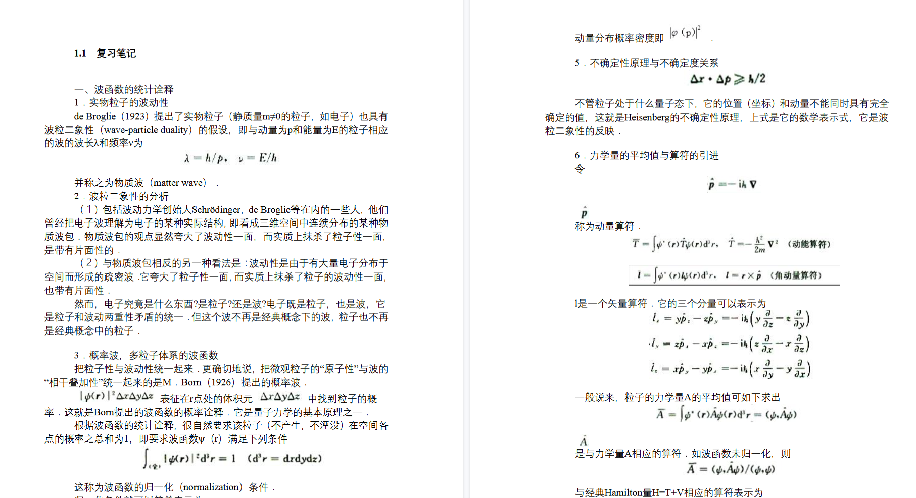 概念与公设:精读并掌握波函数统计诠释、算符与对易关系、薛定谔方程、测量公设、不确定性原理。这是理解后续所有内容的基石,务必清晰、准确。