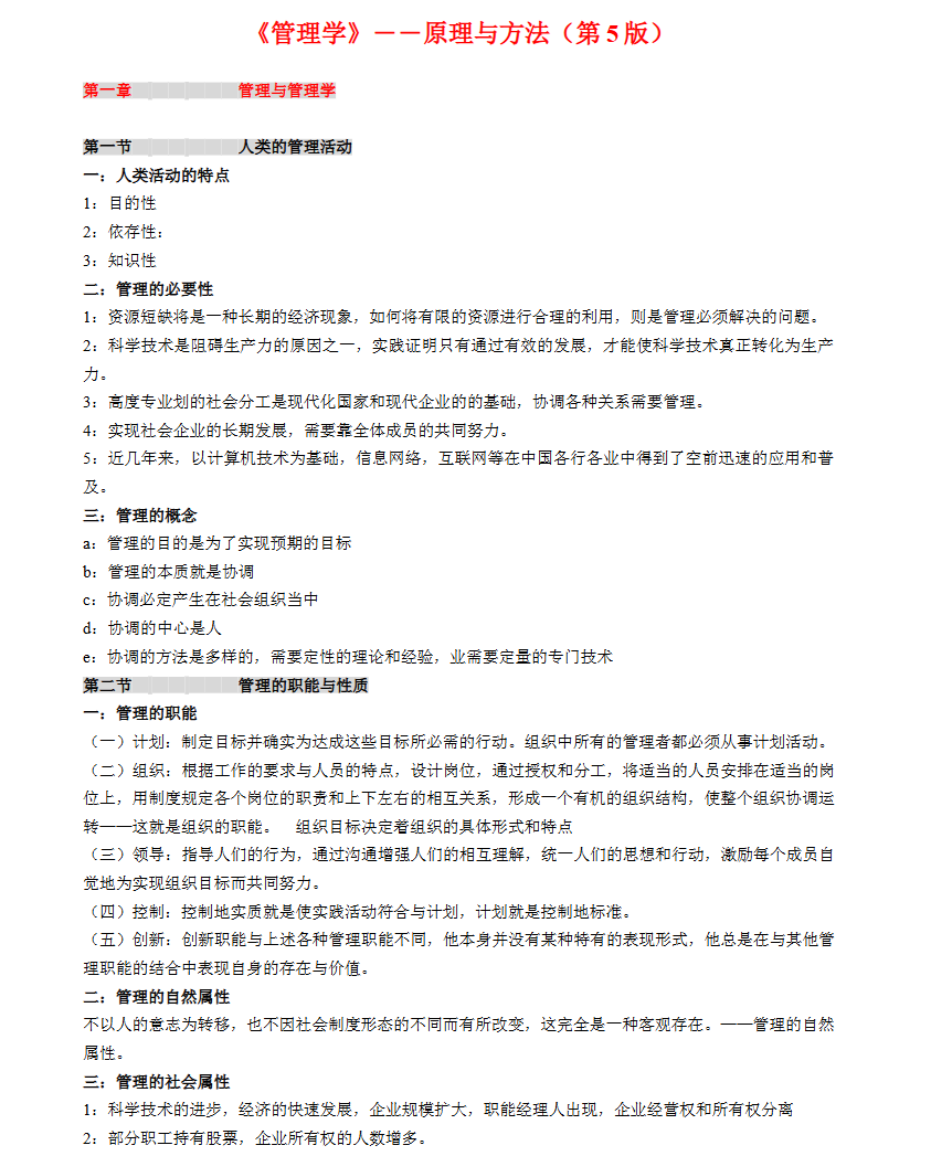 首先,深耕教材体系,筑牢原理根基。系统掌握书中古典、行为科学、现代管理等学派的核心原理,精准吃透第五版对计划、组织、领导、控制四大职能的原理性阐释与逻辑关联,重点关注版本新增的数字化管理、伦理决策等表述。结合书中本土案例(如国企治理、民营企业转型),梳理理论原理与实践场景的适配逻辑,搭建“经典原理-职能体系-版本补充”的知识框架,贴合该书原理导向的核心特点。