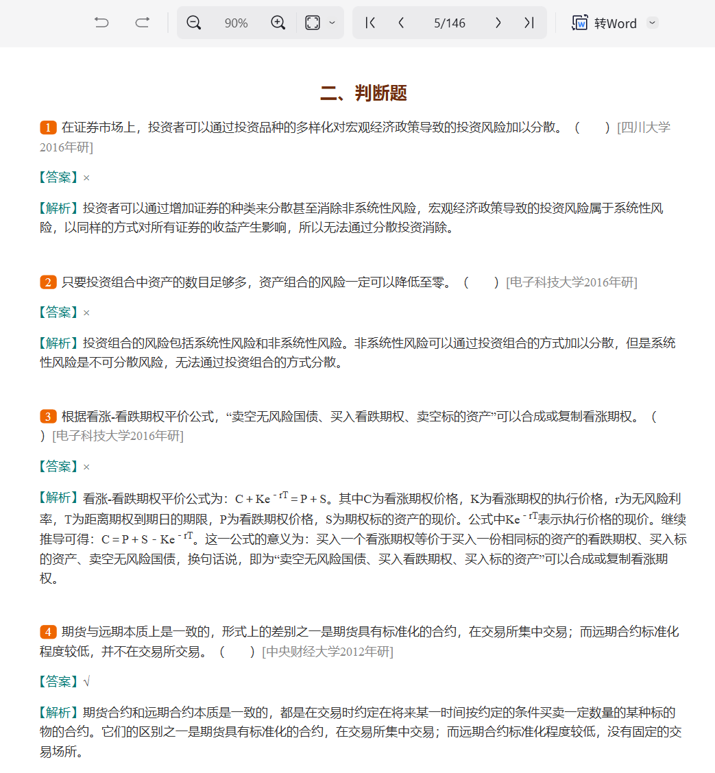 三、强化实战演练,规范答题逻辑。利用教材习题、历年真题开展针对性训练:1. 答题规范:参考真题答案,明确定价题“原理依据—模型设定—参数代入—计算过程—结果解读”、简答题“工具定义—核心原理—应用场景”的答题结构;2. 专项训练:集中练习衍生品定价、风险管理策略设计、工具组合应用等高频题型,严格控制答题时间,提升计算准确率;3. 复盘优化:整理错题本,标注定价模型误用、参数选择错误、策略设计偏差等问题,针对性回归教材补弱,积累规范答题步骤与金融工程分析技巧。